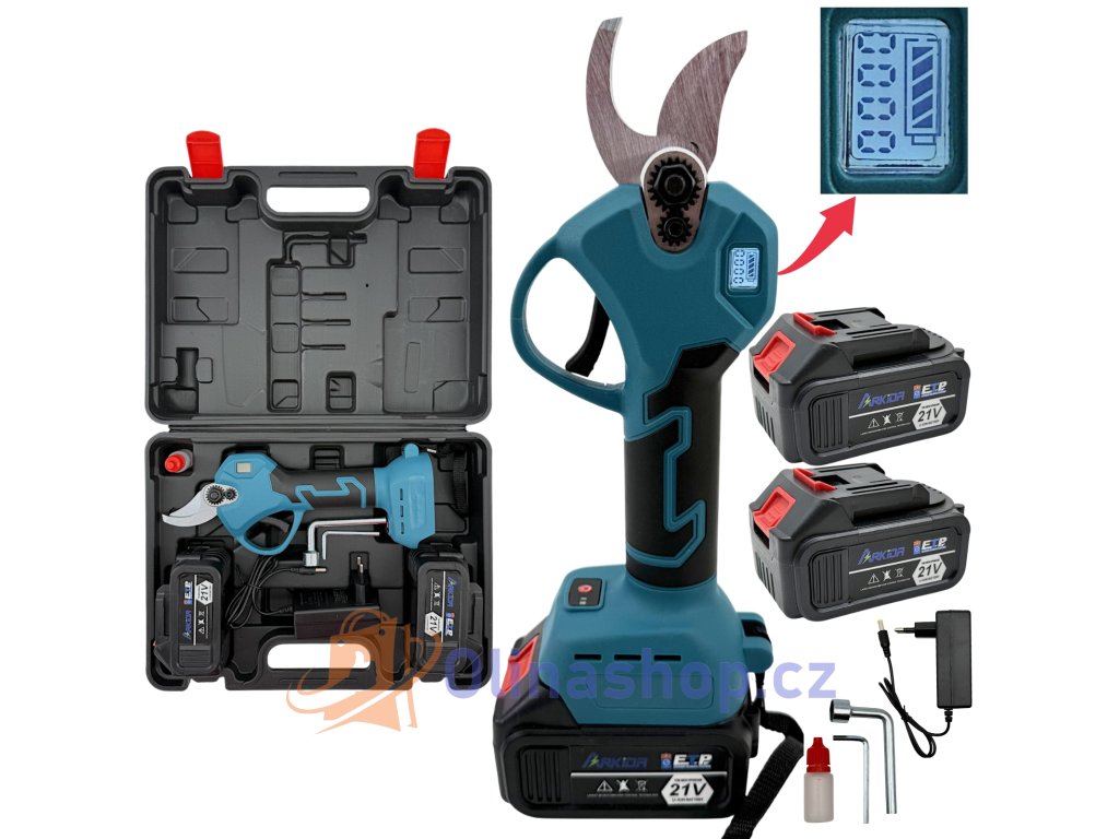 Arkida 0627 Aku ruční nůžky s displejem + 2x2.6Ah Náhradní baterie+ kufřík a příslušenství