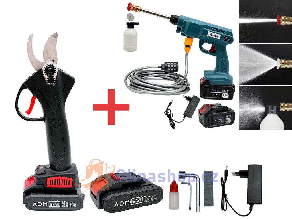 Arkida CJ-425 Aku tlakový čistič + ADM259 Aku ruční nůžky 4x Náhradní baterie