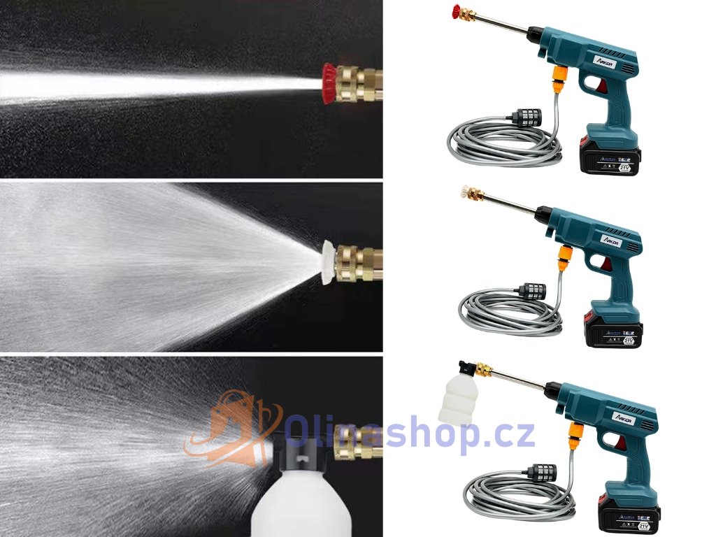 Tento výrobek je akumulátorová tlaková myčka. S vysokotlakým čističem zvládnete úklidové úkoly efektivně. Snadno instaluje, je kompaktní a přenosný. Pro čištění nečistot na různých částech jsou k dispozici různé tlakové trysky a lze je snadno vyměnit. Vhodné pro čištění automobilů, nákladních automobilů, motocyklů, jízdních kol, plotů a podlah v domácnostech atd.