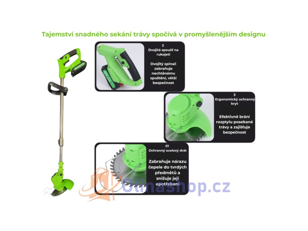 Praktický pomocník pro všechny zahradníky na posečení trávy i na špatně dostupných místech a díky řeznému kotouči lze zaříznout i drobnější větve stromů či keřů.