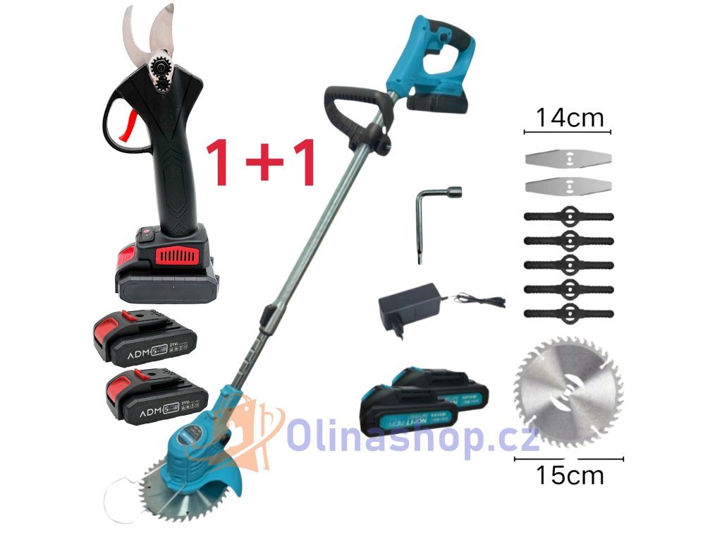 HAYAMI HA-1024 Aku křovinořez + 2x1500mAh baterie 21V Modrá ADM aku nůžky + 2x1300mAh baterie