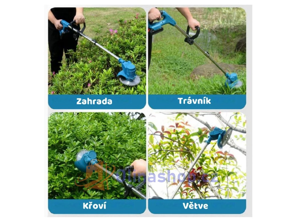 Praktický pomocník pro všechny zahradníky na posečení trávy i na špatně dostupných místech a díky řeznému kotouči lze zaříznout i drobnější větve stromů či keřů.