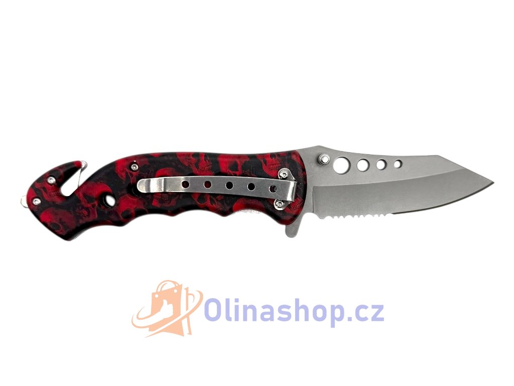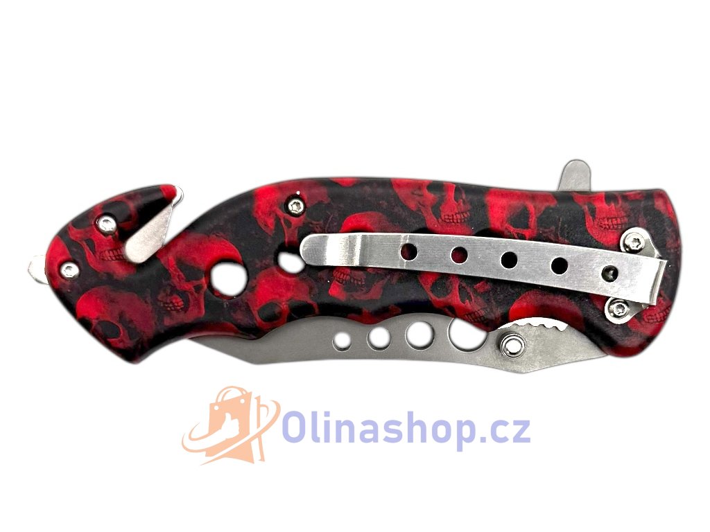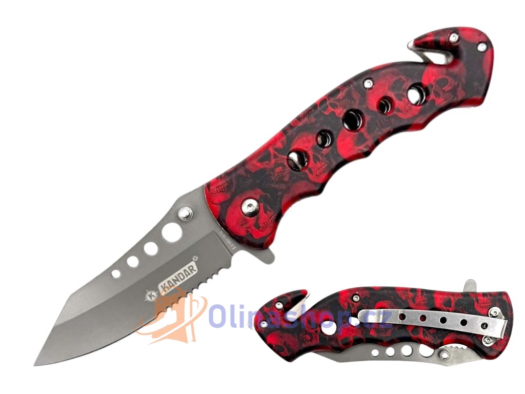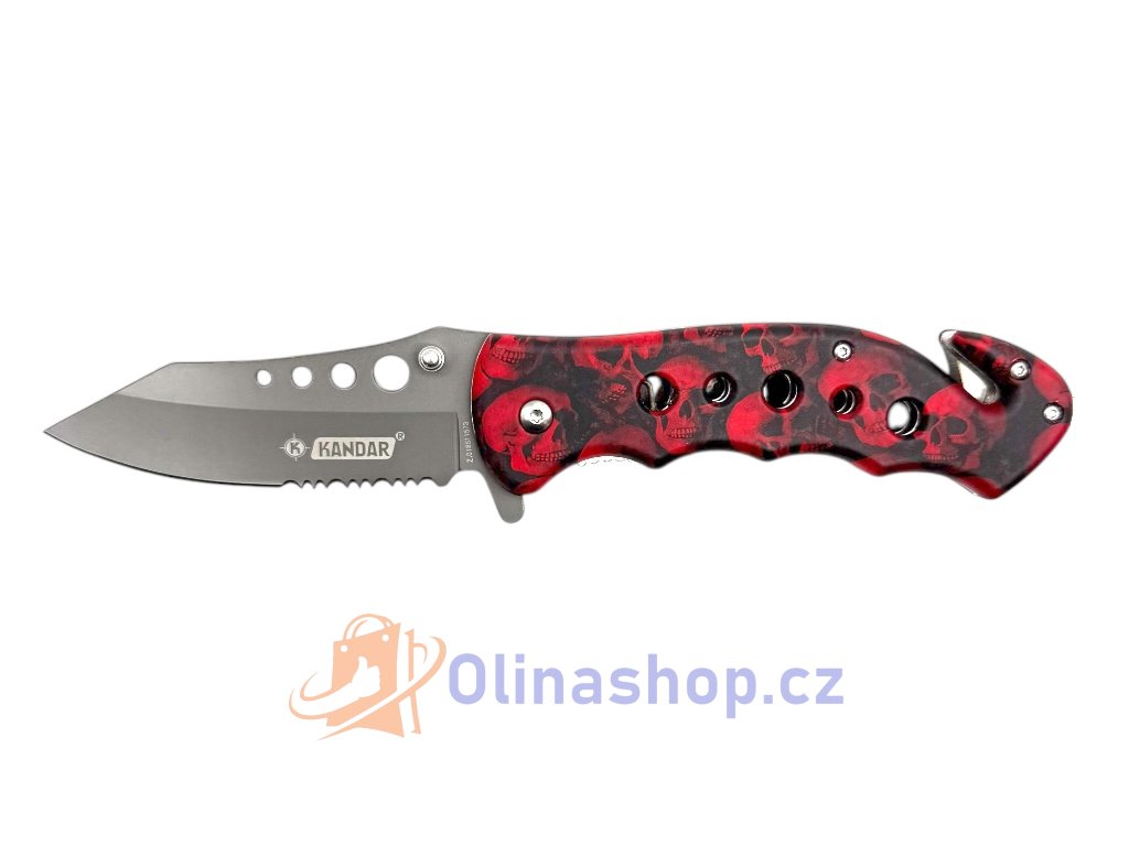 Skládací záchranný nůž KANDAR Red Skull Knife