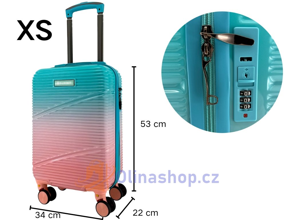 | XS (Malý kufr) | 53×34×22 cm | 2.5 kg | Ano | Ne | 4 ks | Ano |