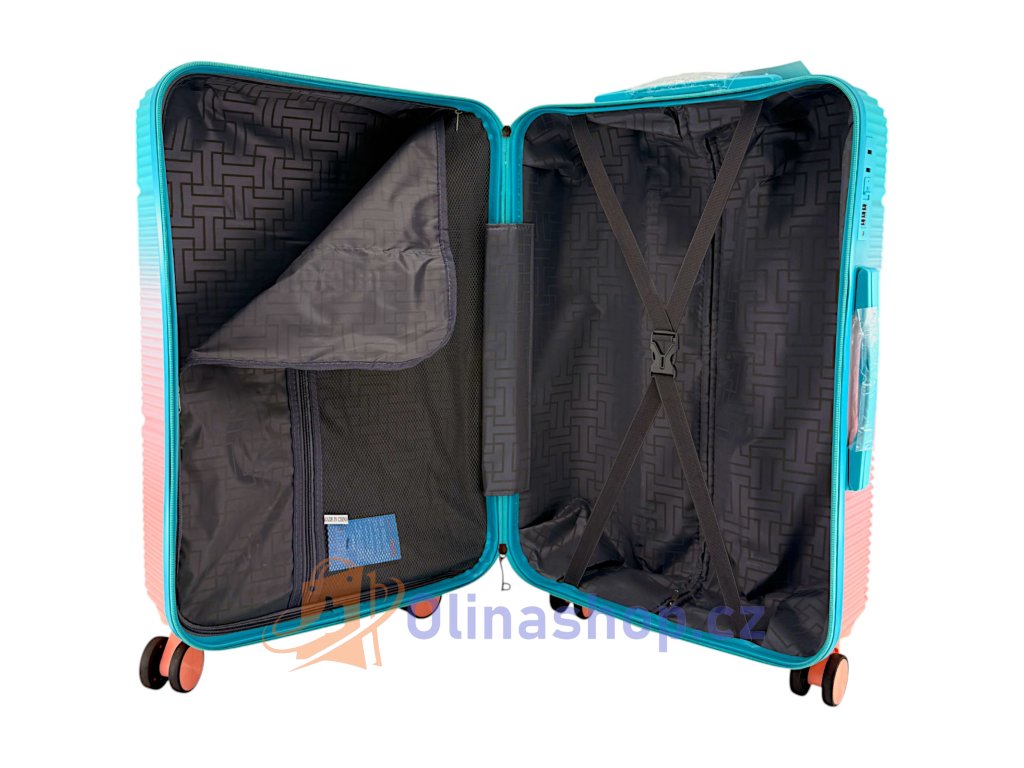 Tento kufr v moderní gradientové barvě je vyroben z lehkého a odolného materiálu PC. Má čtyři 360° otočná kolečka pro snadnou a tichou manipulaci v jakémkoli směru. Díky...