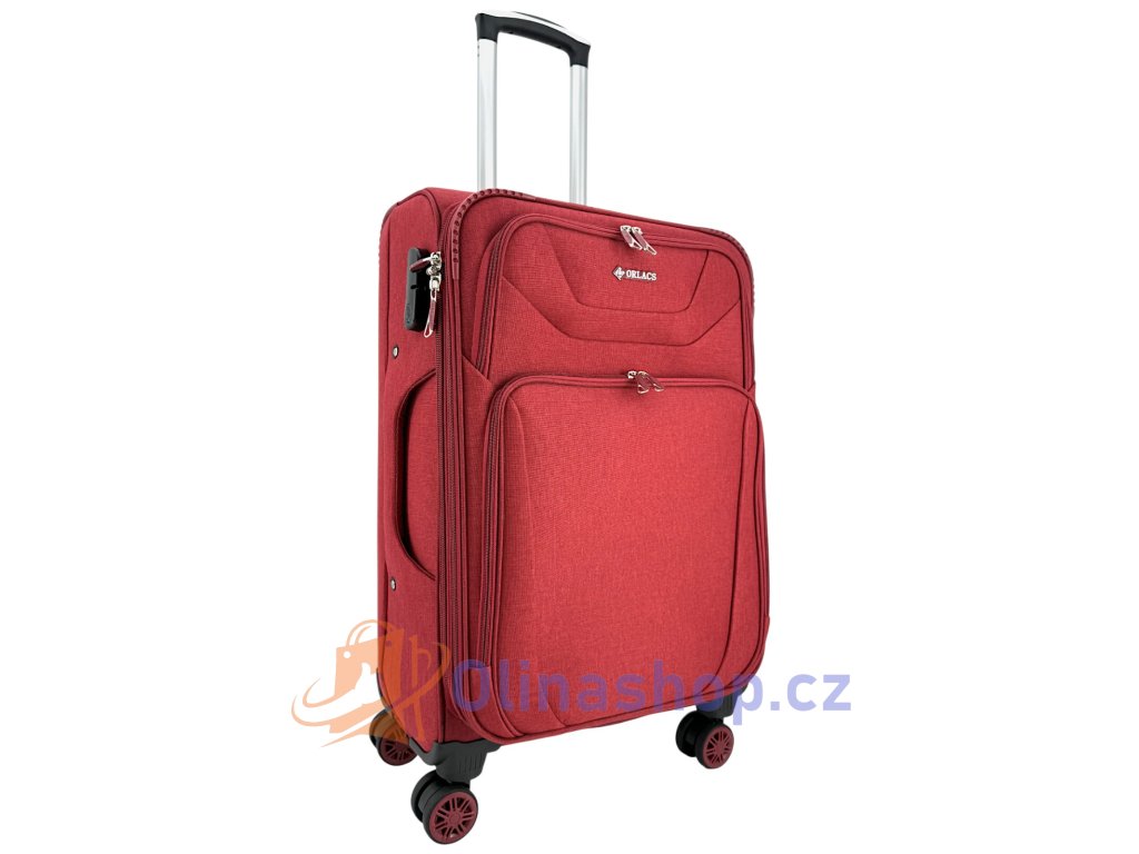 ORLACS 2025-1 Textilní cestovní kufr na 4 kolečkach, červená