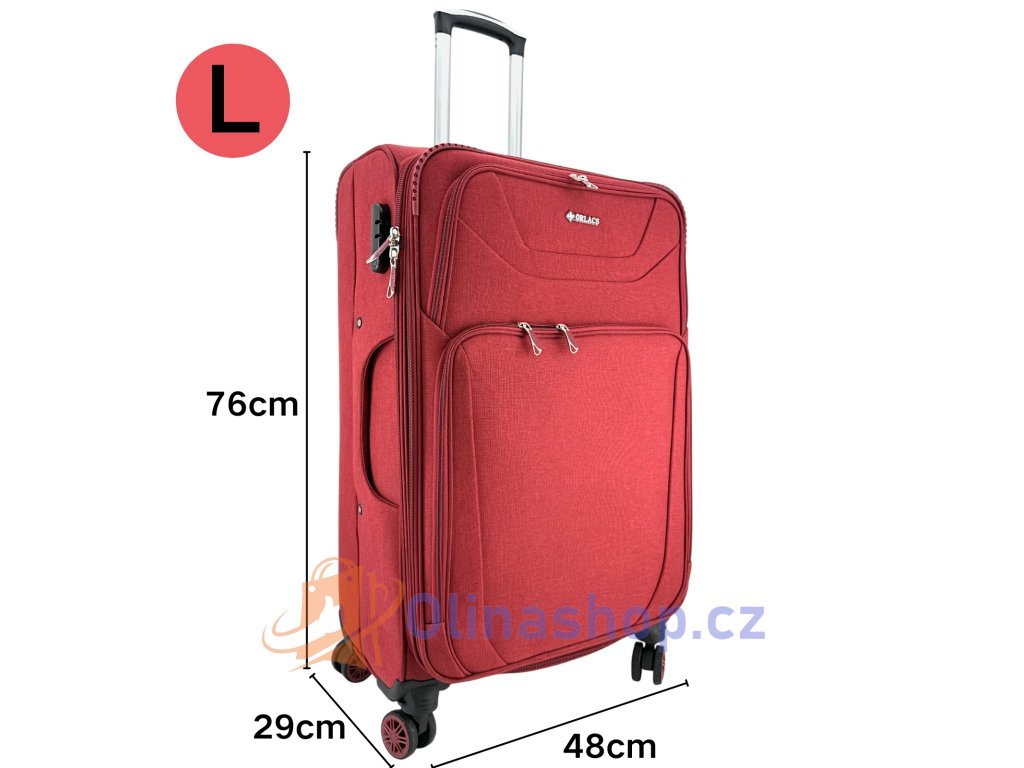Textilních kufrů ORLACS 6004# s otočnými 4 kolečky, teleskopickou rukojetí a odolným materiálem. Obsahuje velikosti S (kabinový), M (střední) a L (velký). Rozšíření objemu...