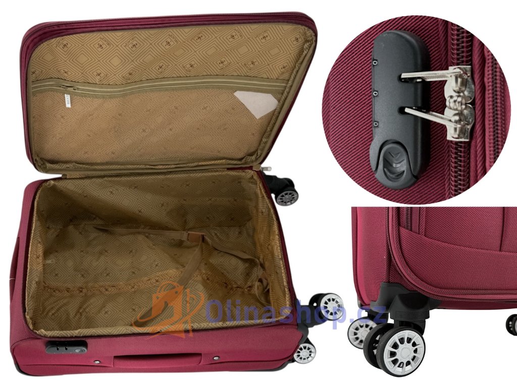 ORLACS 6004 Textilní cestovní kufr na 4 kolečkach, vínová