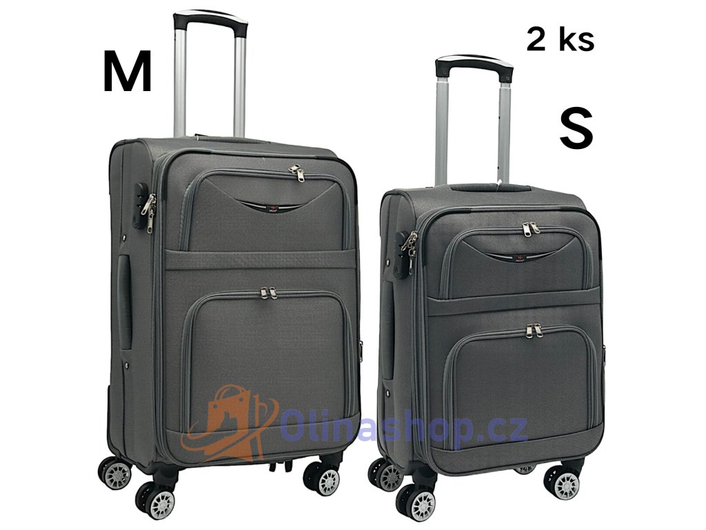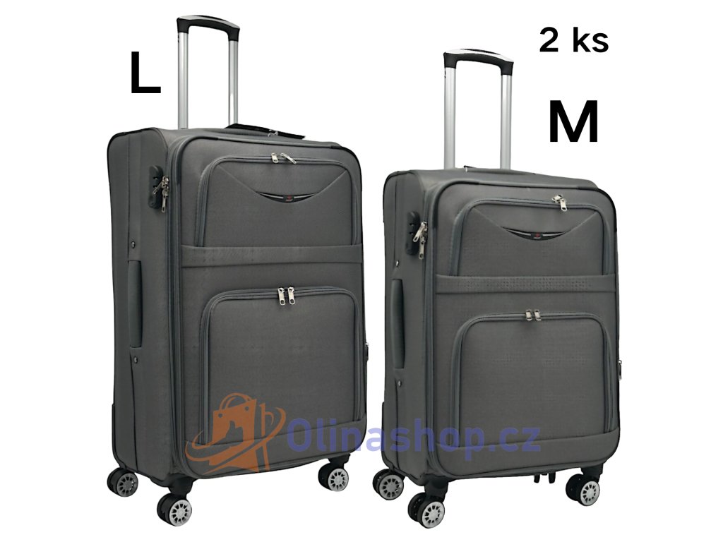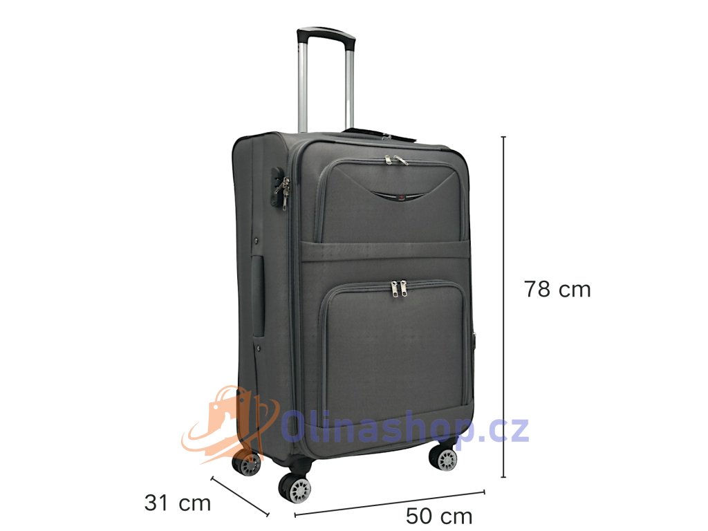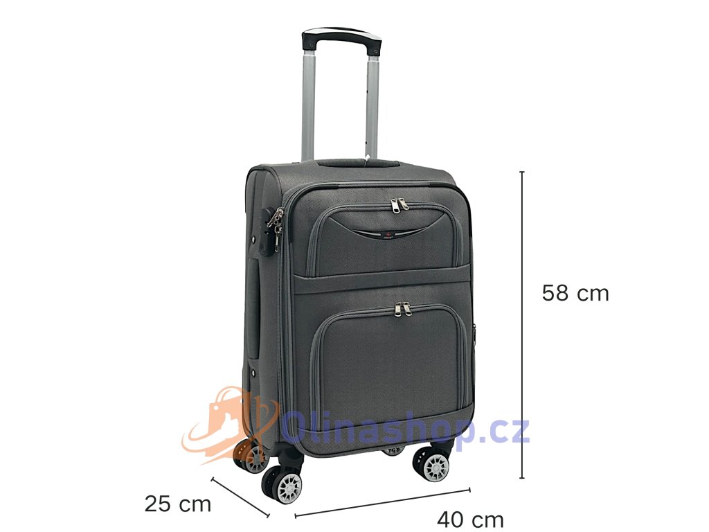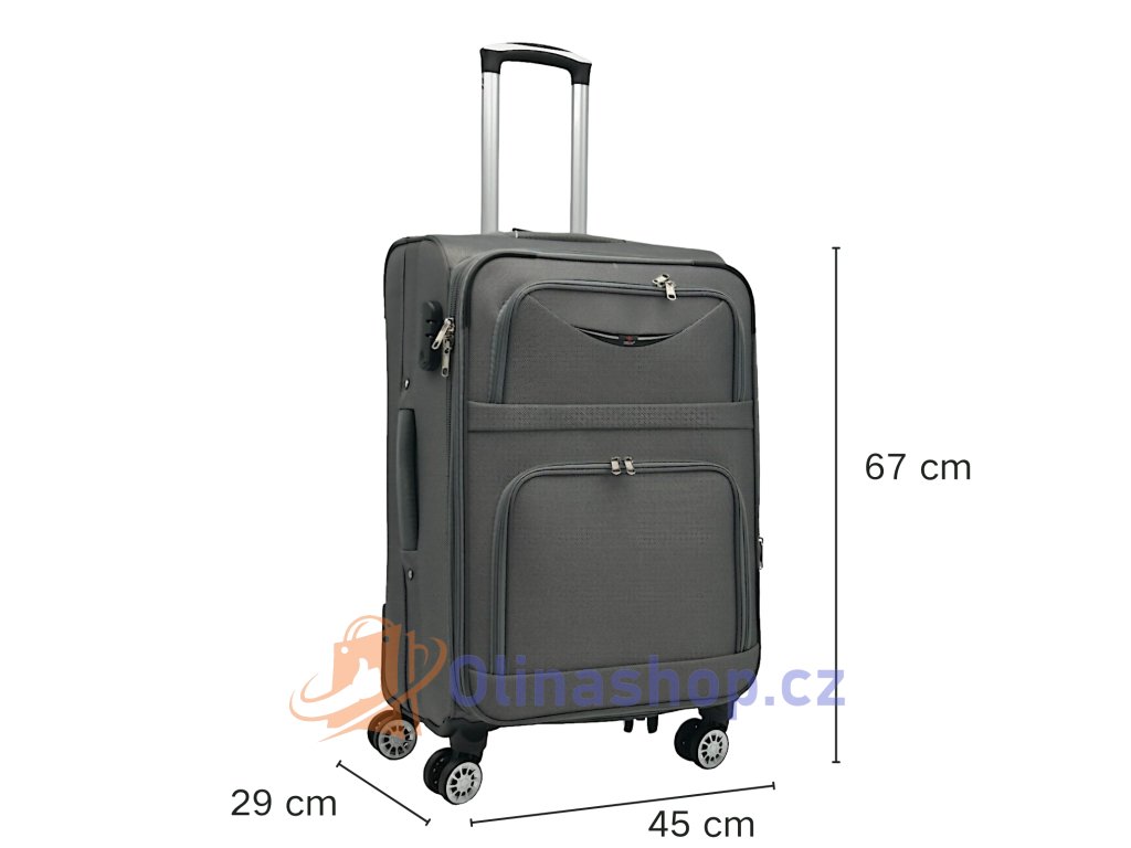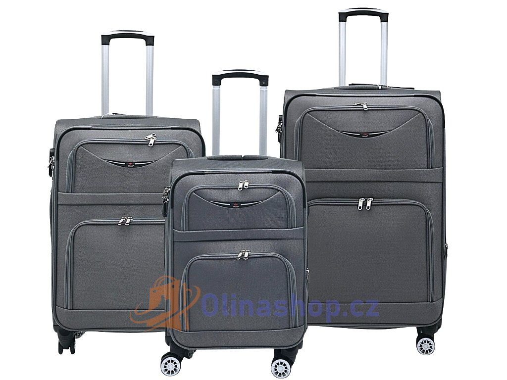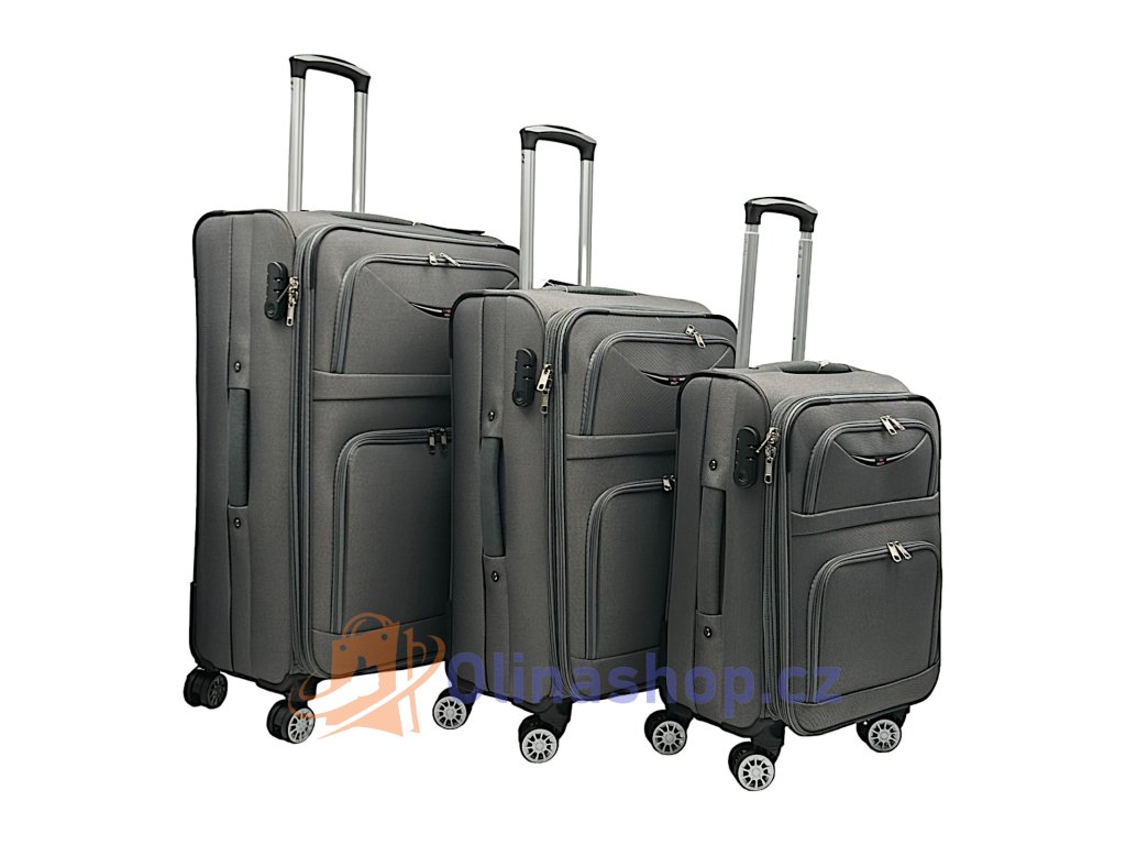 Textilních kufrů ORLACS 6004# s otočnými 4 kolečky, teleskopickou rukojetí a odolným materiálem. Obsahuje velikosti S (kabinový), M (střední) a L (velký). Rozšíření objemu...