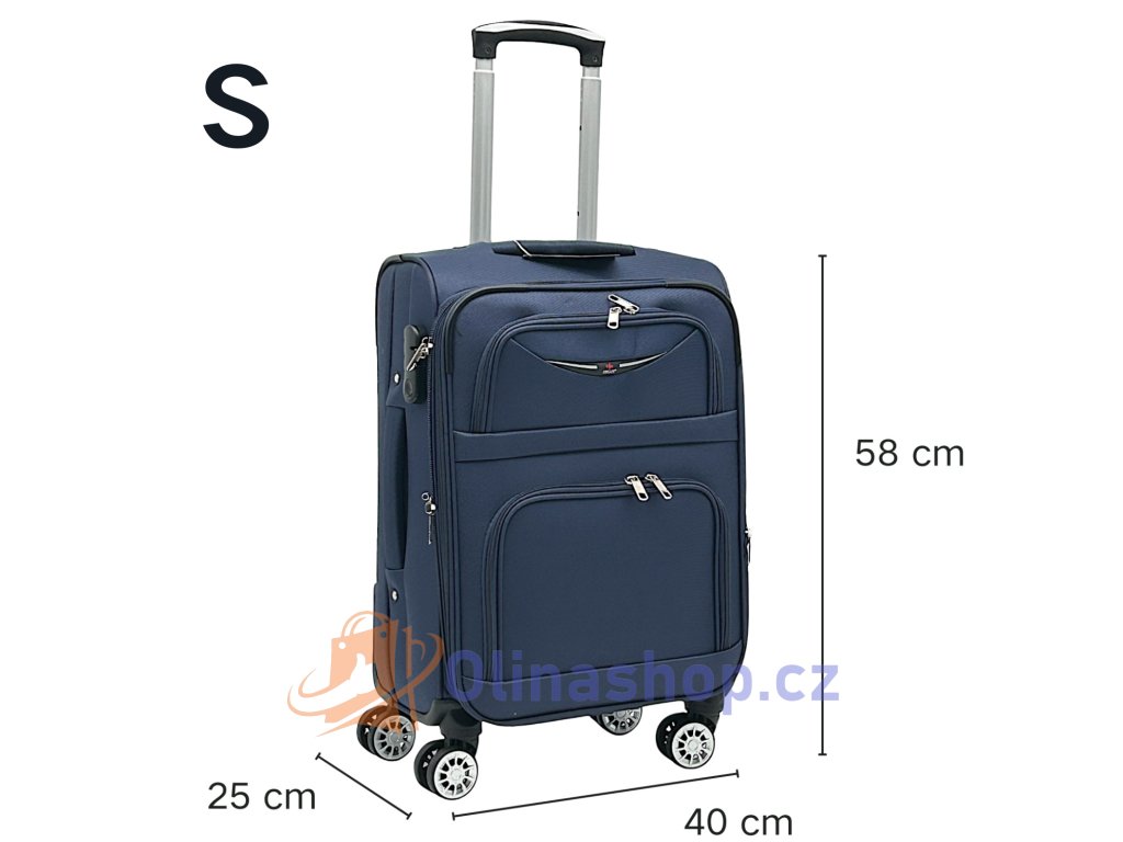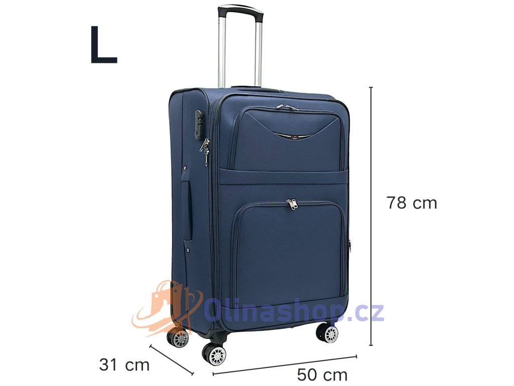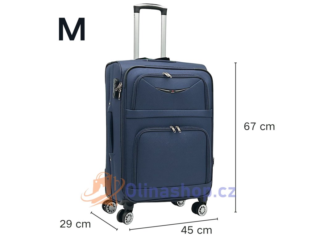 Textilních kufrů ORLACS 6004# s otočnými 4 kolečky, teleskopickou rukojetí a odolným materiálem. Obsahuje velikosti S (kabinový), M (střední) a L (velký). Rozšíření objemu...