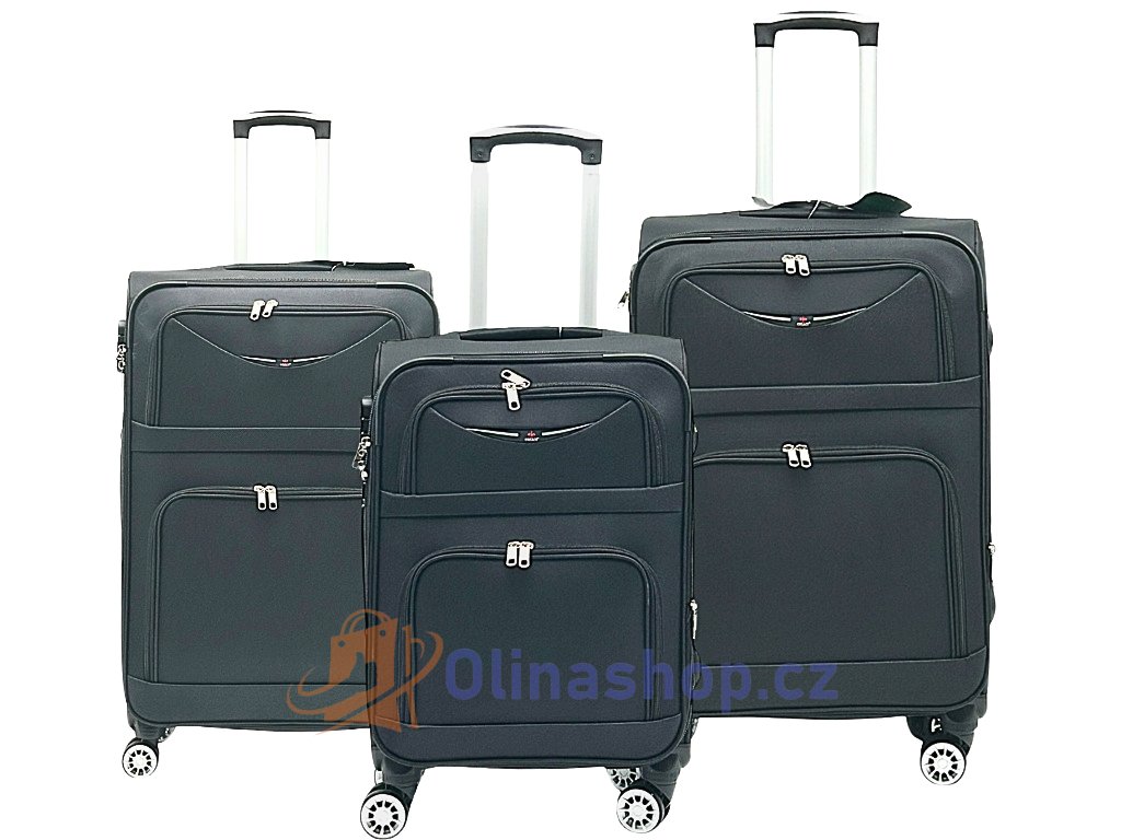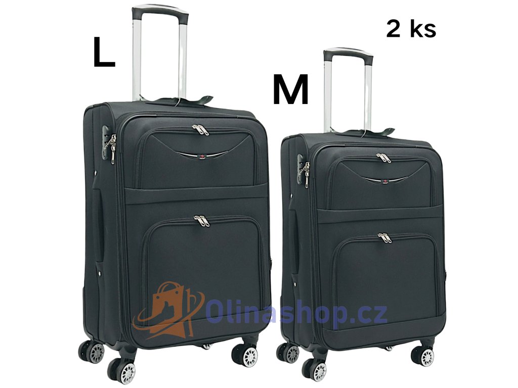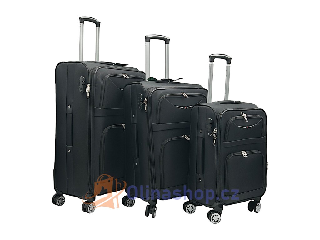 Textilních kufrů ORLACS 6004# s otočnými 4 kolečky, teleskopickou rukojetí a odolným materiálem. Obsahuje velikosti S (kabinový), M (střední) a L (velký). Rozšíření objemu...