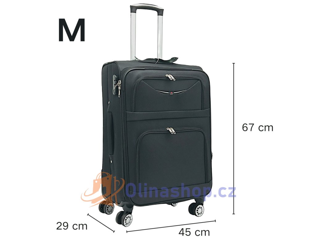 - Střední kufr: 24 palců (67x45x29 cm)