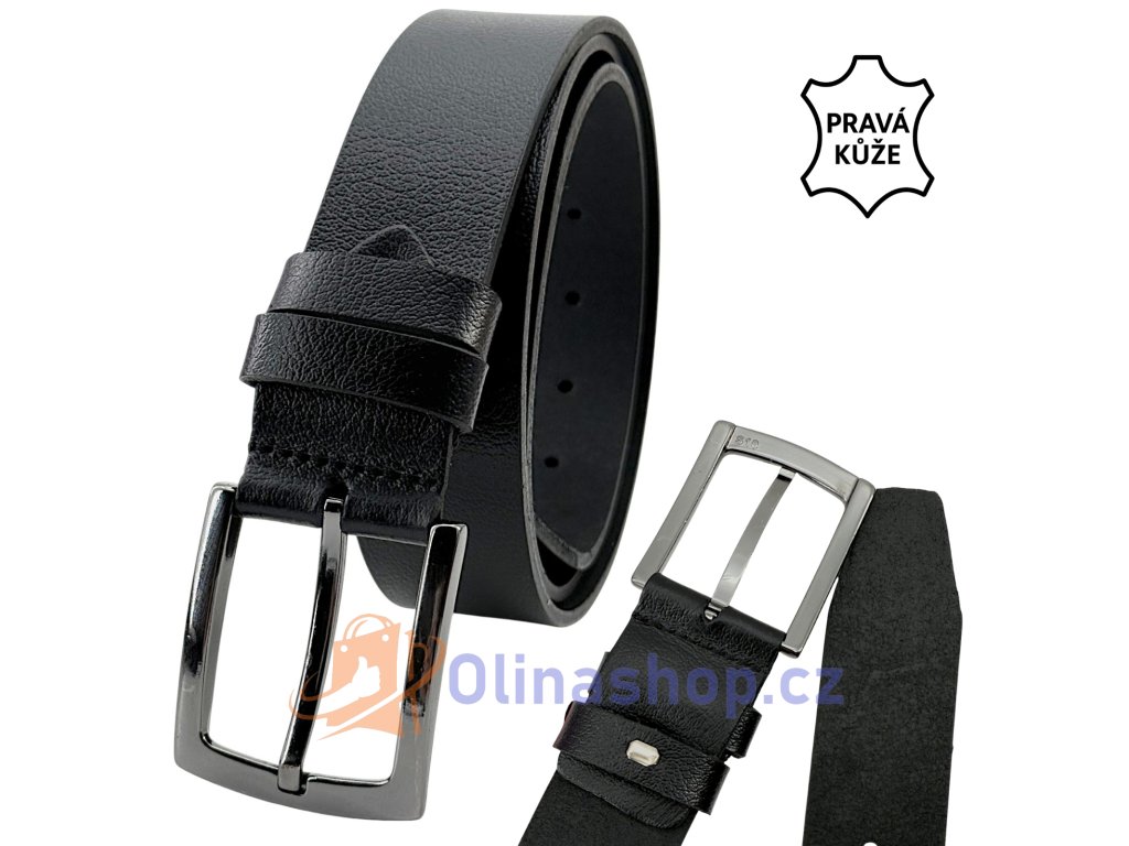 Pánský kožený opasek černý 110 cm, šířka 3,8 cm – ručně dokončovaný