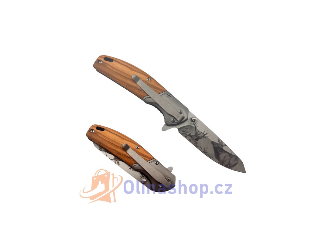 Zavírací kapesní nůž s nerezovou čepelí, gravírovanou rukojetí s motivem hor a jelena. Nabízí asistované otevírání jednou rukou, pojistku a klip na opasek. Elegantní a...