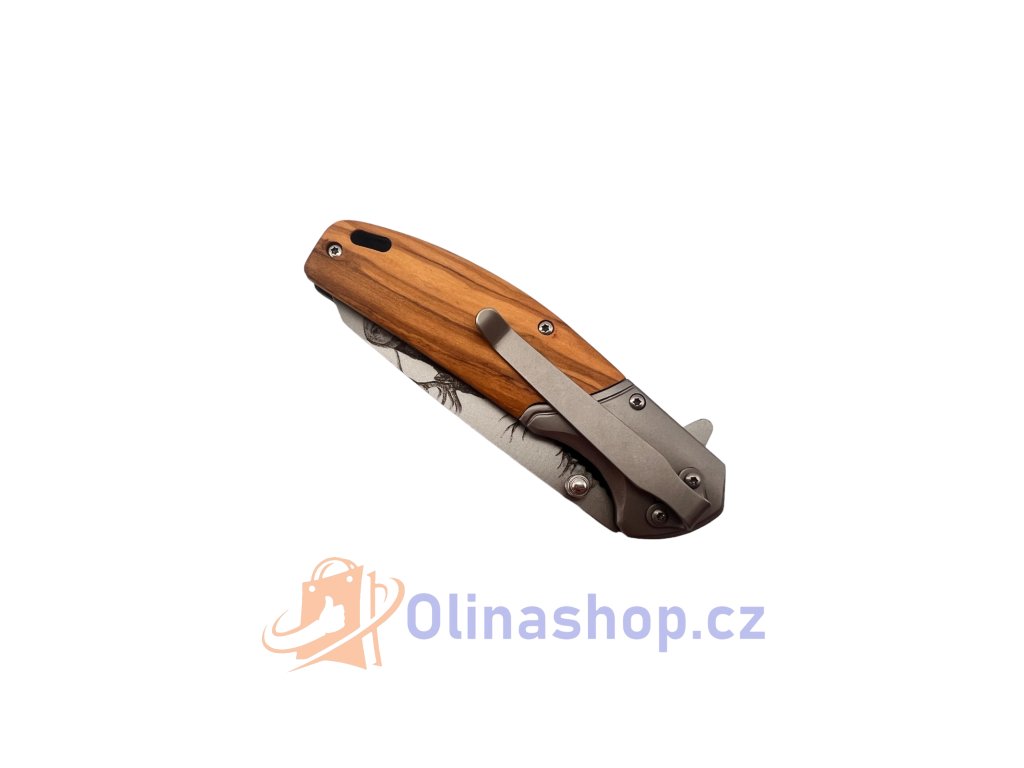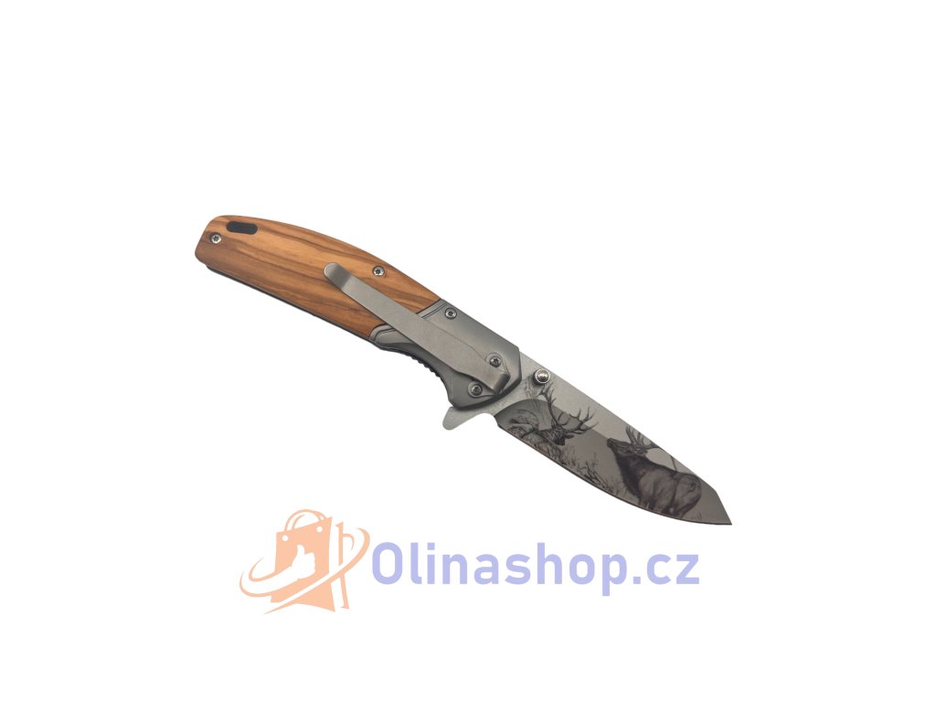 Elegantní skládací nůž "Jeleni" je skvělou volbou pro ty, kteří oceňují vysokou kvalitu. Tento nůž je vybaven kuličkovým ložiskem, což usnadňuje jeho otevírání, a jeho odolná čepel je připravena na zvládnutí náročných úkolů. Rukojeť nože je vybavena dřevěnými vložkami, které zajišťují pohodlný a pevný úchop.