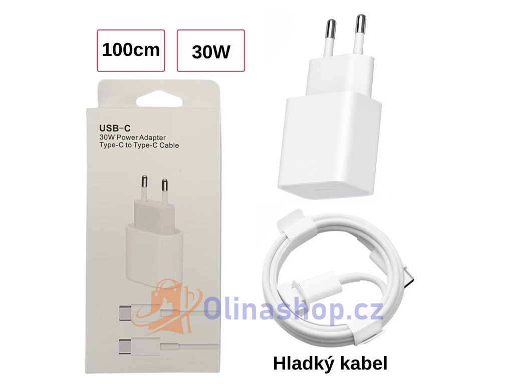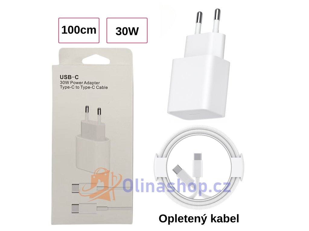 USB-C 30W Nabíječka s kabelem | Rychlé nabíjení PD | 1 m