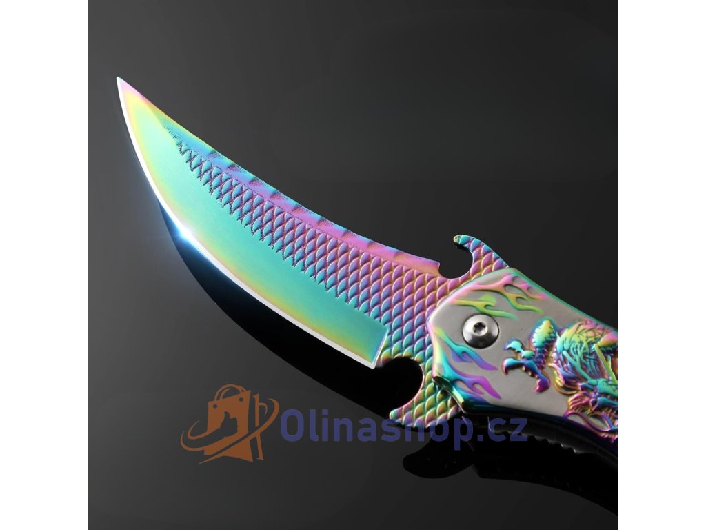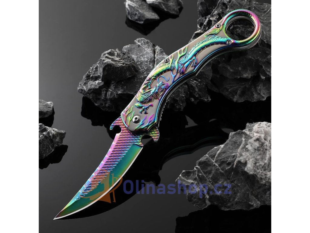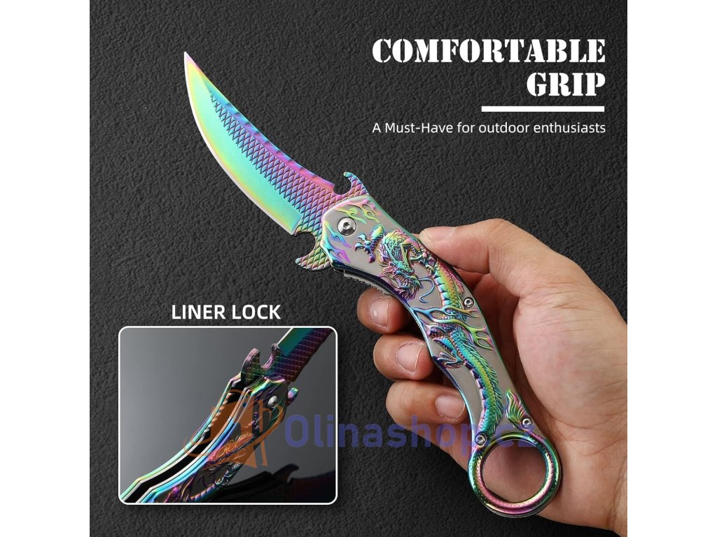 Tento kovový skládací poloautomatický kapesní nůž má jedinečný design a všestranné funkce, ideální pro každodenní použití i nouzové situace. Čepel je ozdobena vygravírovaným...
